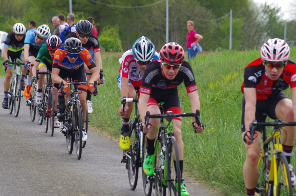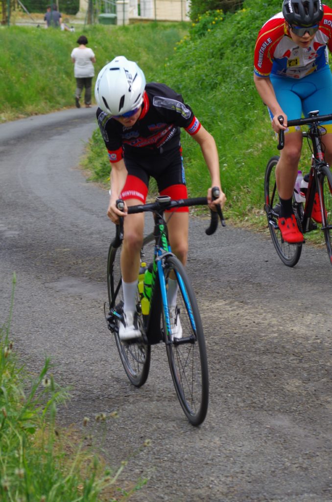 Des attaques dès les premiers tours. 2 coureurs s’échappent. Tous les coureurs Montgesnois s’accrochent au peloton.