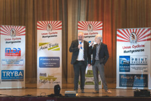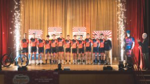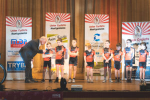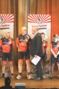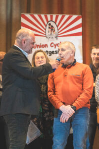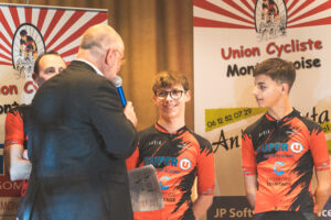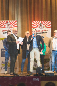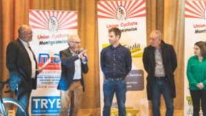 Un des points forts de cette soirée a été la présence, par visio interposée, de Mathys RONDEL, coureur professionnel de Tudor Pro Cycling formé et licencié à l’UC Montgesnoise, en stage en Espagne. Il a ainsi pu parler de sa préparation en cours et de son programme 2024 tout en se prêtant volontiers au jeu des questions réponses avec l’assemblée.