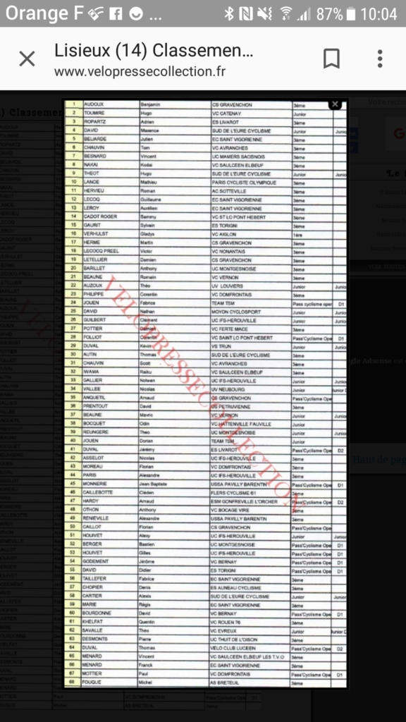 A l’entame du 4ème grimpeur ( qui était le plus difficile avec une montée de 1.3kms à 8% avec 13% au maximum) le peloton a littéralement explosé, il y en avait partout et Thomas en a fait les frais, il terminera les 40kms seul.
