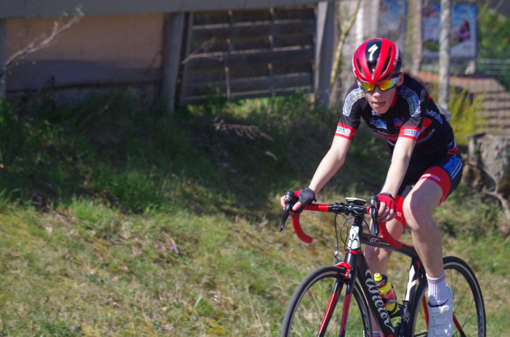 Un coureur finit par partir seul de l’échappée et ne sera jamais rattrapé. Aurélien termine au sprint devant ses 2 concurrents.