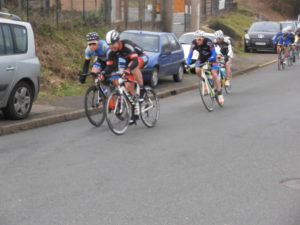 Au 4ème tour l’échappée n’est plus que 8. Puis à 2 tours de l’arrivée un groupe de 3 toujours avec Renaud a pris le devant pour s’expliquer pour le sprint final. Le contre reviendra sur le reste de l’échappée.