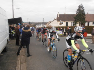 Pour les D1 D2 regroupés en un seul peloton de 53 partants. Renaud, Valentin, David, Joachim, Gaël, Richard et Axel ont pris leur départ à 15h pour 7 tours de circuit d’un peu plus de 9 kms.