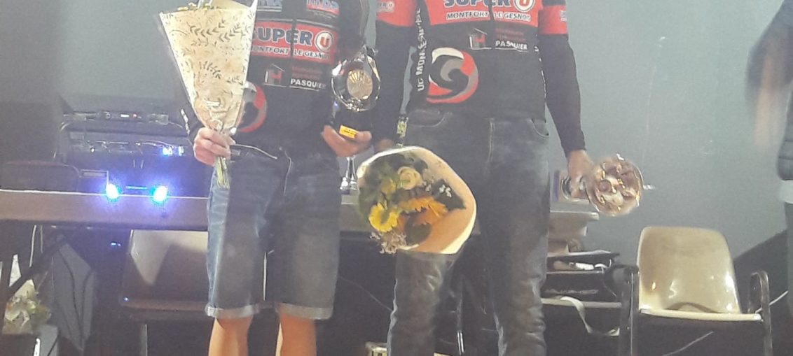 Sur 50 tours se disputent cette course pour Dorian PERLEAUX notre cadet et malheureusement à mi-course un concurrent vient toucher la roue de Dorian pour la voiler et casser des rayons. Dorian a pu repartir en changeant rapidement de roue au bout de 5 tours comme le stipule le règlement et