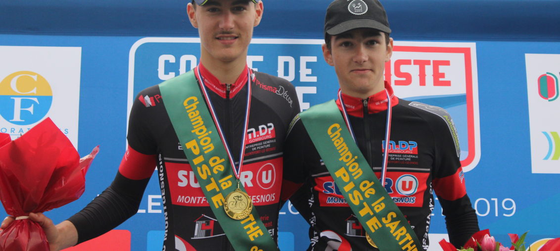 Aurélien PLESSIS en minimes et Dorian PERLEAUX en cadets ont dominé la journée en remportant tous les deux la vitesse et la course aux points. Dorian conclura aussi par gagner la poursuite. Le titre de Champion de la Sarthe piste en minimes pour Aurélien PLESSIS et en cadets pour Dorian PERLEAUX. Wilson RAPICAULT