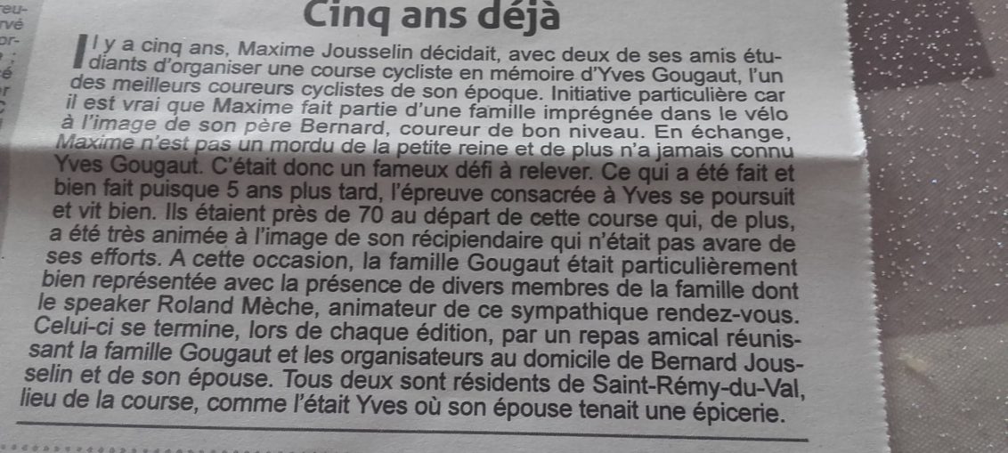 Elouen LEDAIN en pupille, Léonie FOUGERAY, Antonin LEBARBIER et LEROUX et Lucas DEBRA étaient nos représentants avec comme épreuve pour Elouen adresse, vitesse et cyclocross et pour les benjamins chrono cyclo, vitesse et cyclo. Pas de pluie cette fois ci où les épreuves se sont enchainés pour les 29 engagés. Une petite