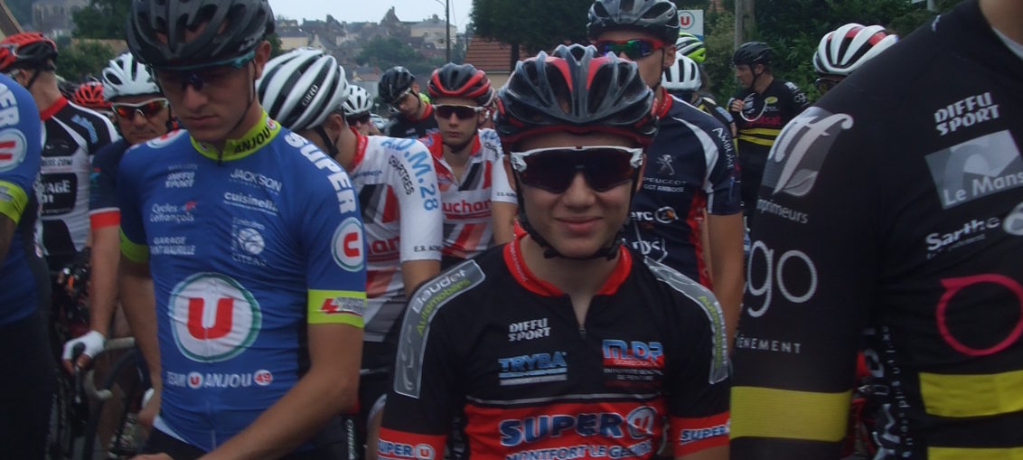 Quentin FROGER, Théo LEROUX, Julien MULOT, Anthony BARILLET et Julien MULOT étaient nos représentants sur ce critérium de Bagnoles de L'orne légèrement modifié par les derniers intempéries. Une échappée c'est formé sans Montgesnois dedans et derrière un contre avec Quentin qui sera repris par le peloton ou tous les rouges et