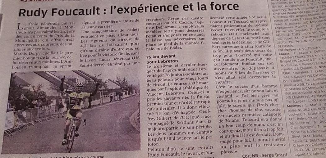 Léonie, Lucas, Antonin et Mylan inscrit de dernière minute sont partis pour 4 tours de 2,300 kms avec 19 autres concurrents. Lucas c'est retrouvé devant pendant que les autres Montgesnois se sont bien battus derrière pour finir leur course encadré par les cadets. Résultats UCM : Lucas DEBRA : 4ème Mylan