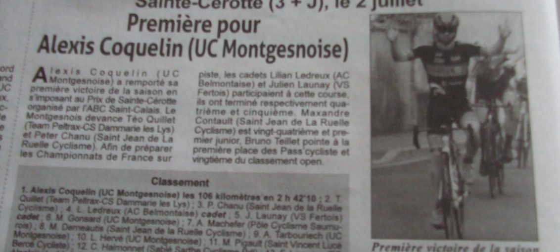 Arrivée au sprint pour Dorian . Résultats UCM : Dorian PERLEAUX : 3ème