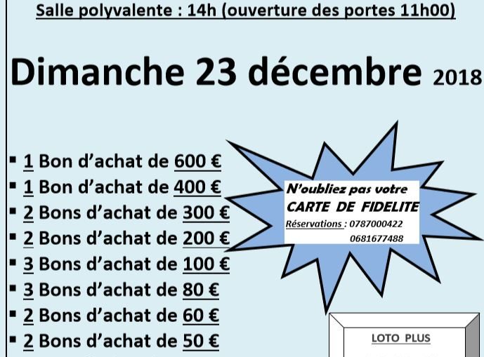 Loto Dimanche 23 Décembre 2018