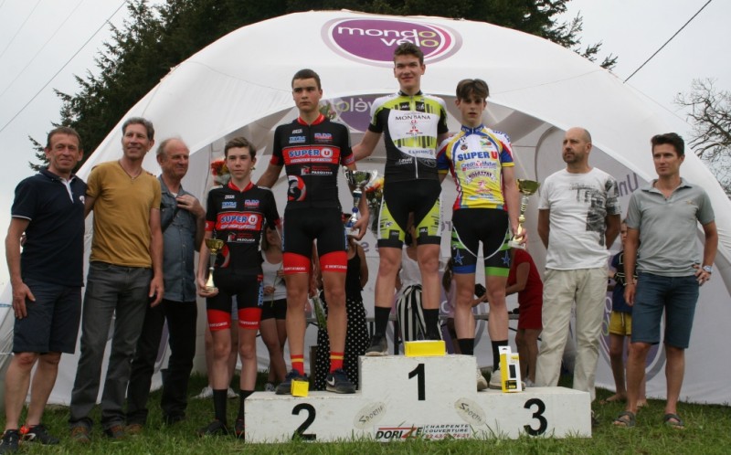 44 participants prenaient le départ pour couvrir 82kms. Des le premier tour 9 coureurs prenaient distance avec le peloton rattrapée par sept autres à mi-course. Ce fut très animé au sein de ce groupe dont faisait parti Romuald HERVE, Julien GONSARD et MULOT accompagné de l'infatigable Renaud BLARY. Dans le dernier tours 3