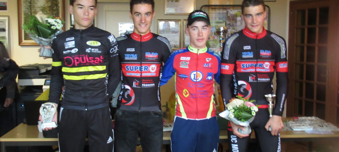 Aurélien PLESSIS, en minimes, participait à cette finale où de très bons minimes étaient présents. 73 coureurs allaient se jouer la victoire sur un circuit de 8kms relativement plat à parcourir 5 fois SOUS LA PLUIE! Pendant la course, Aurélien évita beaucoup de chute et patienta comme convenu dans le peloton jusqu’au