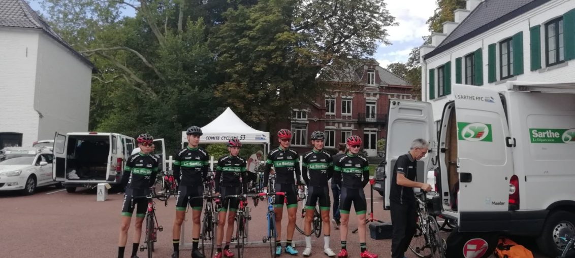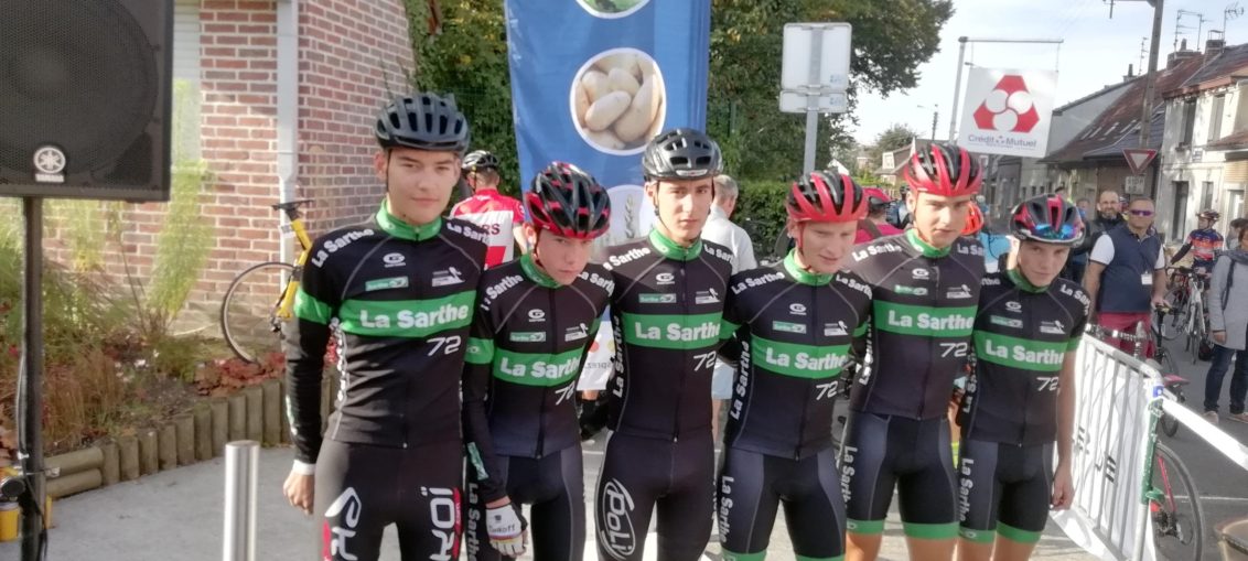 Des nouvelles de Templeuve sur la finale de la coupe de France cadets ou la sélection Sarthe s'est très bien défendue avec nos Montgesnois Thomas et Antonin TOUCHARD, Dorian PERLEAUX et Justin ROUSSET. Ils partaient pour un contre la montre par équipe à 17h03. 24 départements étaient présents. Jusqu'à 18h