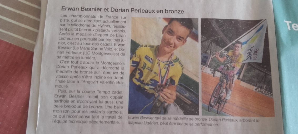 Samedi est la dernière journée de compétition pour Dorian avec la course à l'Américaine ou avec son binôme Erwan BESNIER (MSV) ils l'avaient emporter de belle manière au Mans au moi de mai. Pour Erwan, il fait 7ème sur la poursuite individuelle. Le lendemain, pour l'élimination il fait 4ème, déçu d'être