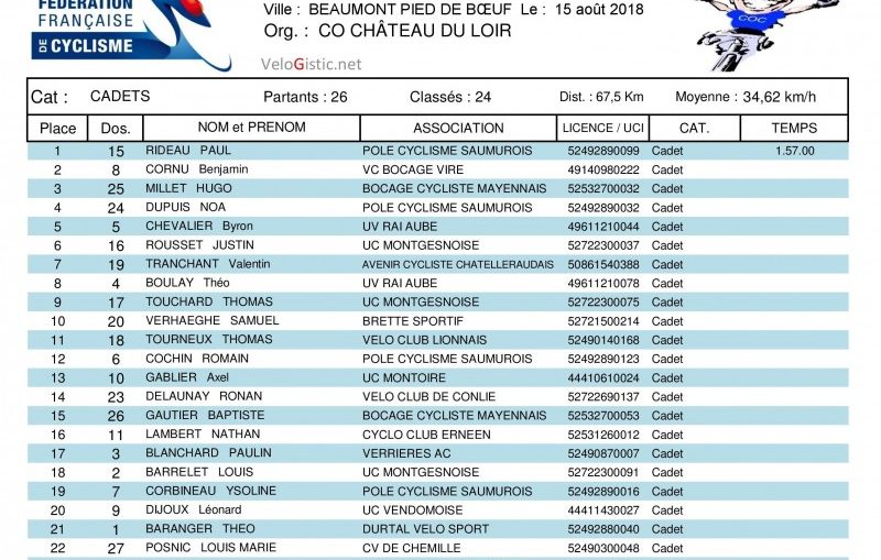 15/08/2018 – Beaumont Pied de Bœuf – Cadets