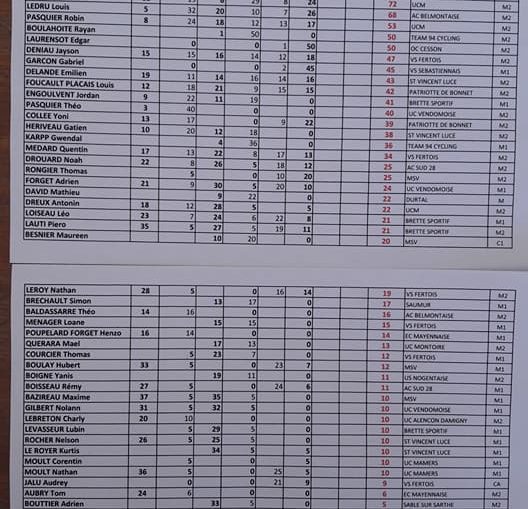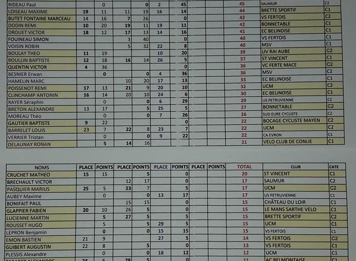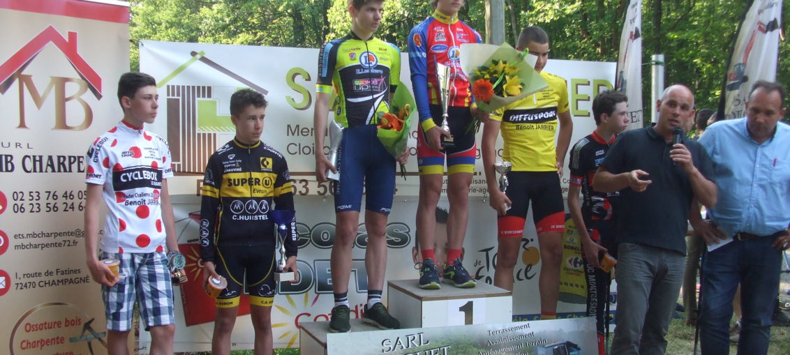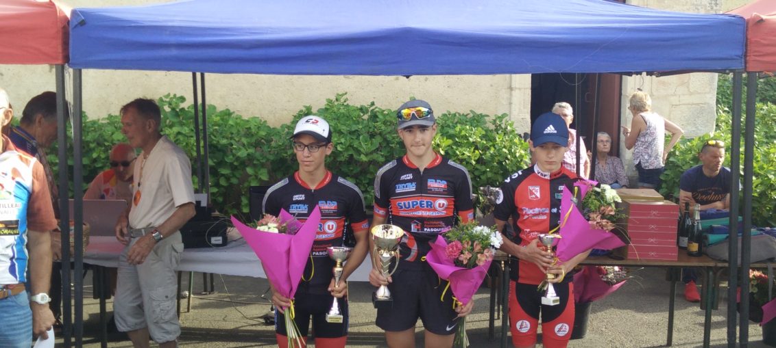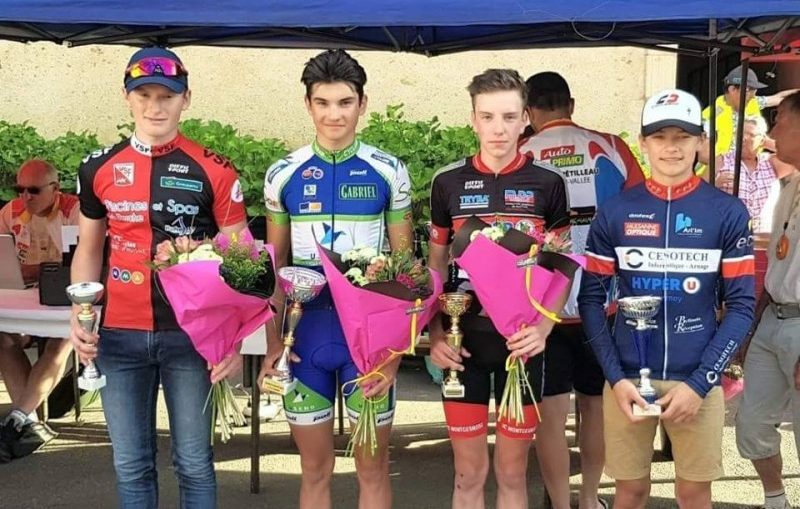 Antonin TOUCHARD, Rémi POISSENOT et Alexandre PLESSIS (Marius PASQUIER déclarant forfait), pour un 1er tour d'observation pour pour prendre un rythme de croisière avec une échappée avec Antonin , Baptiste MENAGER (VSF) et le futur vainqueur. Ils s'entendent tous les 3 à merveille et les dégâts ont pu être constaté puisque