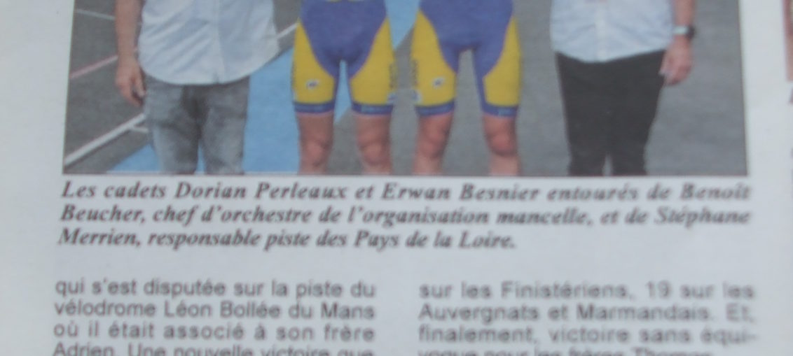 De nombreux articles et photos ce matin sur le Pays De Loire avec évidemment le duo Dorian PERLEAUX et Erwan BESNIER ( MSV) pour leurs belles prestations lors de manche de la coupe de France de l'Américaine. Et un petit clin d’œil pour une des photographes du club Alexia DAURIANNES a