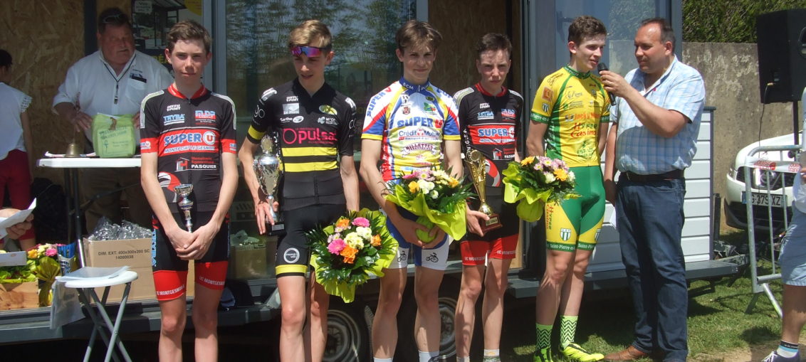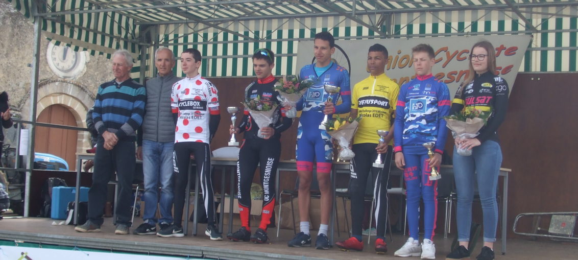 Chez les minimes Louison LEBARBIER portera le maillot de meilleur grimpeur pour cette 2ème manche du challenge Benoit JARRIER et Nicolas EDET. Il aura lui aussi à cœur de le garder et accompagné de son équipe composé de Robin, Aurélien, Ludwig, Wilson et Antonin essayé de récupérer le maillot jaune. TOUS EST