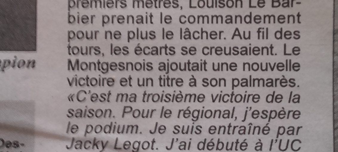 Antonin et Louison coaché pour l'un par papy et pour l'autre par papa se sont élancés sur ce parcours pour la dernière manche du challenge régional ou les points comptaient doubles, d’où l’importante pour eux de briller. Mayennais, Ornais, Vendéens et Sarthois étaient présents pour les encourager. Louison a pris un