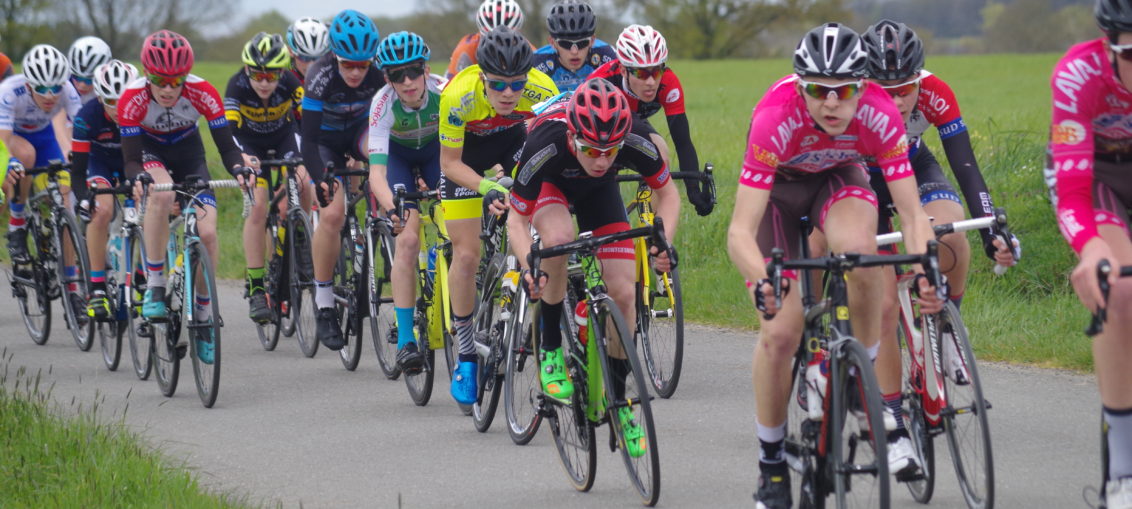 2 cadets Montgesnois ce dimanche à Chemazé avec Antonin DREUX et Louison LEBARBIER. Beau peloton de 60 coureurs au départ de cette course Mayennaise de 52.5 km. Parti 3 minutes avant les minimes, ce peloton de cadets restera très groupé dans le premier tour. Antonin aura des difficultés à suivre le tempo.