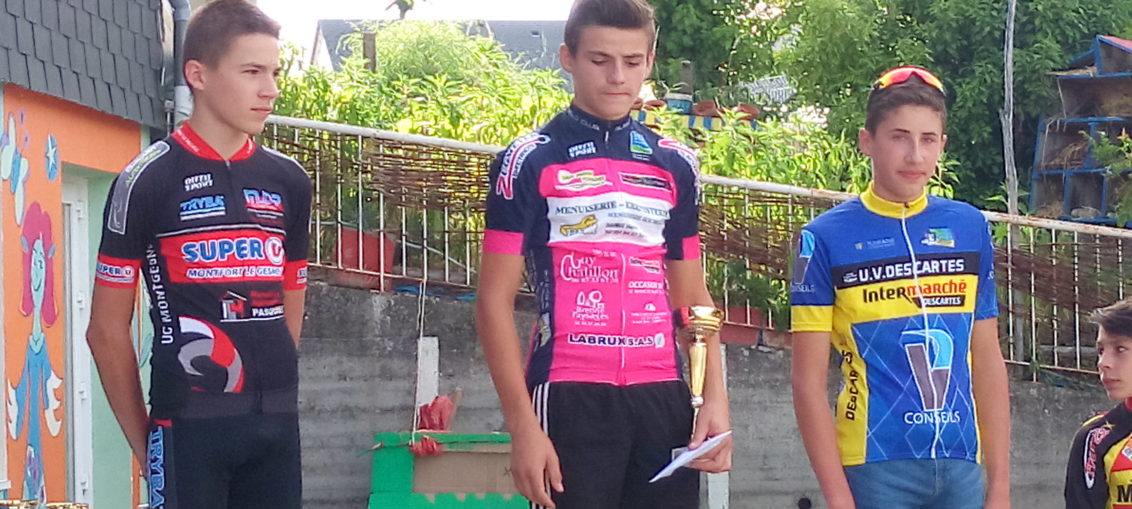 Lucas DEBRA était le représentant Montgesnois ce dimanche à Reugny en Indre-et-Loire. Un circuit de 2.9km et 11 tours à effectuer. Un premier tour assez rapide mais le peloton reste groupé. Quelques accélérations dans la montée de la ligne d'arrivée mais le tempo permet aux quelques coureurs lâchés de recoller sur