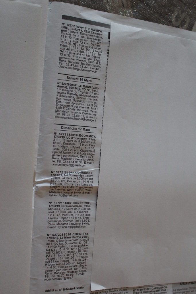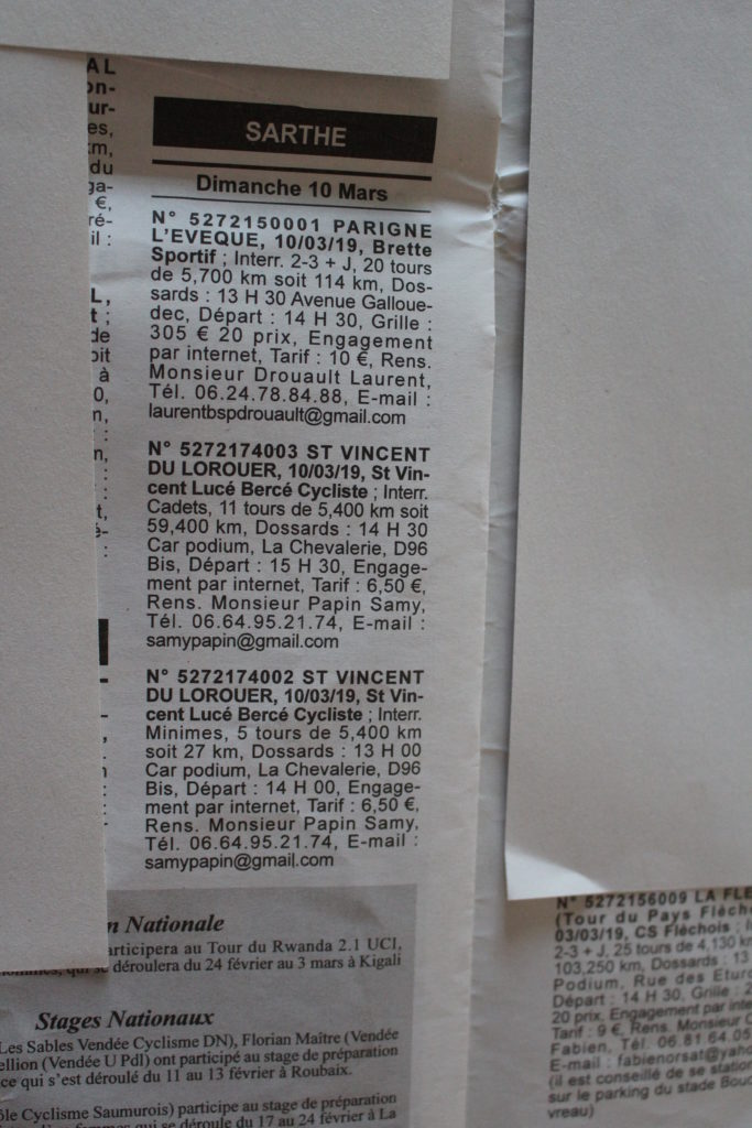 Détail course en Sarthe du 09 au 17 Mars 2019