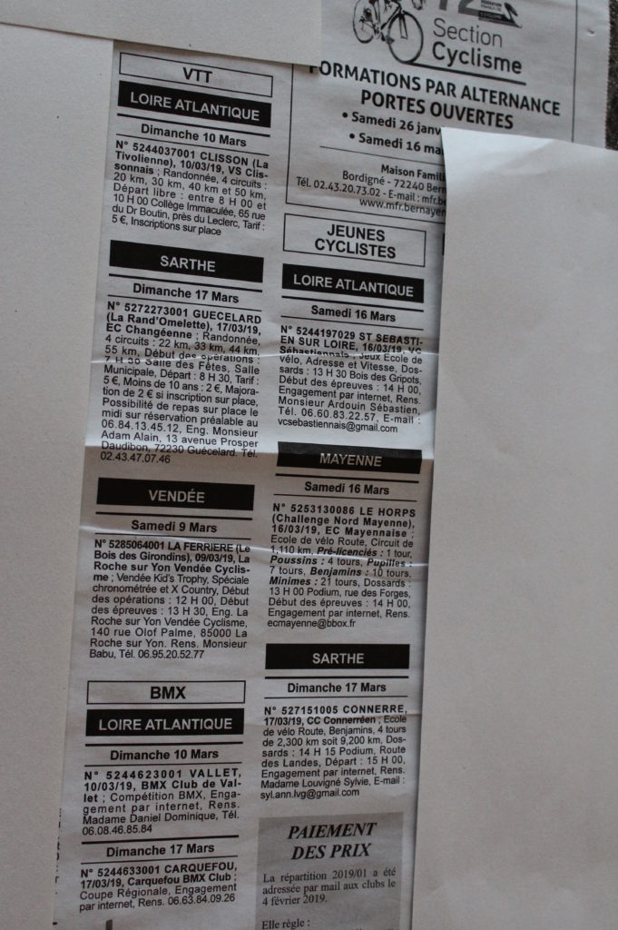 Détail courses des jeunes Cyclistes et VTT du 10 au 17 Mars 2019 Vie du club - 6 mars 20196 mars 2019