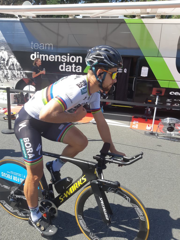 Ils ont fait le tour du circuit du contre la montre avec au début la Fortuneo puis ils ont finit avec les gens de l’association initiative cœur puis ils sont rentrés dans les paddock où était installé les bus des équipes.