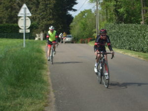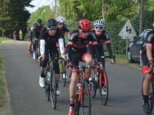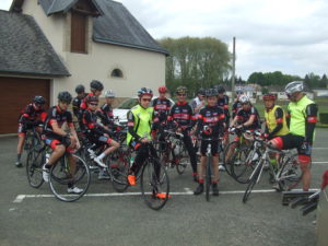 Jacky DELAHAYE et Philippe PASQUIER étaient présents pour canaliser ce groupe est donné des conseils entre autre à notre tous jeune benjamin Lucas DEBRA qui c’ est mêlé au groupe pour 15kms. Derrière Didier MULOT était présent pour toujours défendre la cause des coureurs, je double, je m’écarte de1.50m, et enfin Valérie LEBARBIER avec Antonin comme voiture balai.