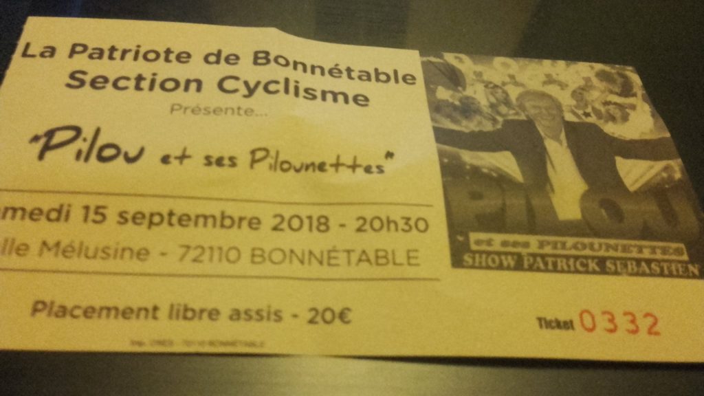 Régis CISSE a fait une place de 8 dans la course à Torcé En Vallée, il a reçu comme lot une bouteille de rouge qu’il a gardé évidemment mais aussi il offre généreusement une place pour Pilou et Les Pilounettes pour le 15 septembre car il est pas dispo.