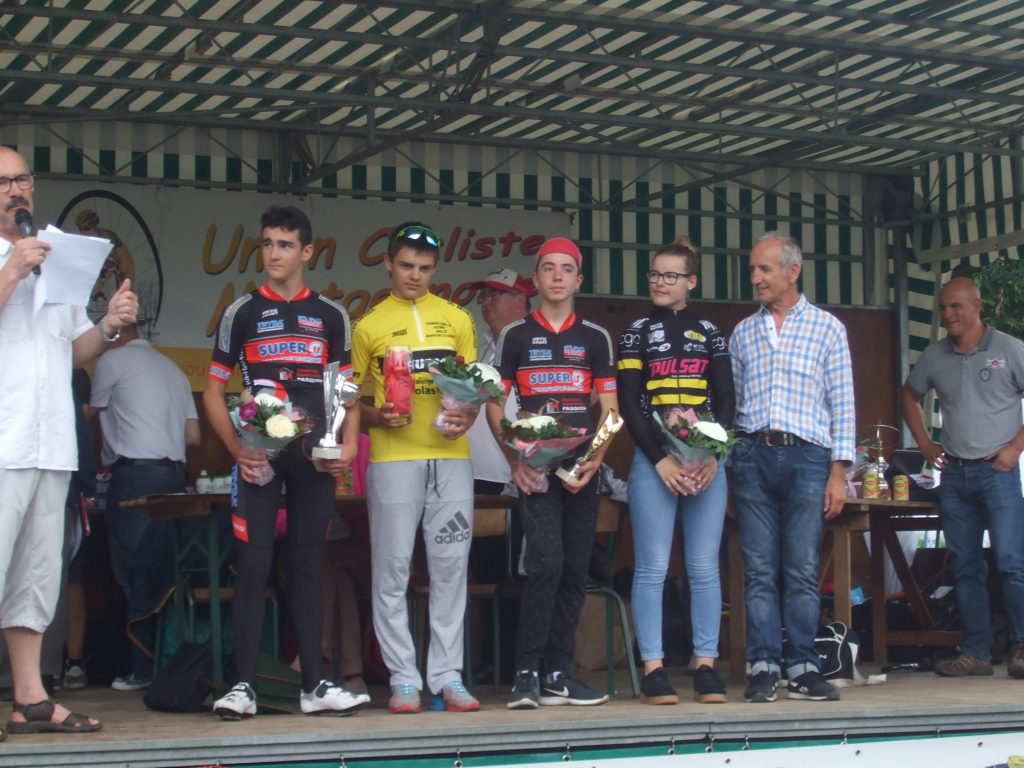 Ludwig QUONIAM a remporté dimanche 10 juin le maillot jaune sur ses 4 courses, il a reçu comme récompense une composition florale, le maillot jaune, un vase gravé et offert par Maskil BASTIEN charpentier à Champagné et un maillot COFIDIS et un sac offert par Nicolas EDET.