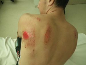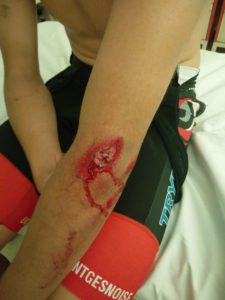De belles égratignures et trois points de suture au coude. Encore une super maman qui va s’occuper de son fils!!!!!!!!!!!!!!