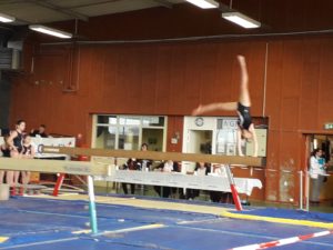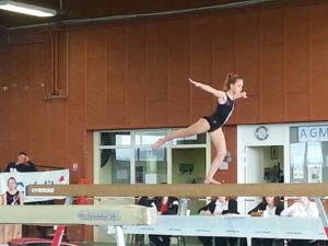 L’équipe d’Alicia composé de 5 jeunes gymnastes se classe première et pour clôturer la matinée Alicia remportera aussi le classement individuel sur 65 participantes.
